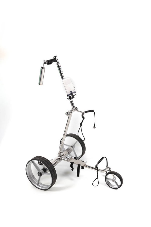 I nostri carrelli sono realizzati in acciaio inossidabile di alta qualità, resistente al vento e agli agenti atmosferici. Due potenti motori nell'albero assicurano che tu possa giocare una partita a golf facilmente e senza sforzo. Con la batteria al litio puoi giocare 36 buche. Il trolley è facile e veloce da piegare e aprire e occupa poco spazio in macchina o nell'armadietto del club. Insomma, un piacere passeggiare insieme e tanti altri lo possono confermare. Forniamo una garanzia di due anni sul carrello e sulla batteria.