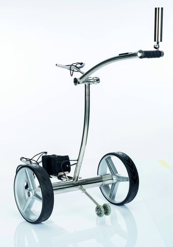 I nostri carrelli sono realizzati in acciaio inossidabile di alta qualità, resistente al vento e agli agenti atmosferici. Due potenti motori nell'albero assicurano che tu possa giocare una partita a golf facilmente e senza sforzo. Con la batteria al litio puoi giocare 36 buche. Il carrello è facile e veloce da montare e smontare. È composto da 5 parti e può quindi essere portato con sé come un pacchetto compatto e occupa poco spazio in macchina o nell'armadietto del club. Insomma, un piacere passeggiare insieme e tanti altri lo possono confermare. Forniamo una garanzia di due anni sul carrello e sulla batteria.
